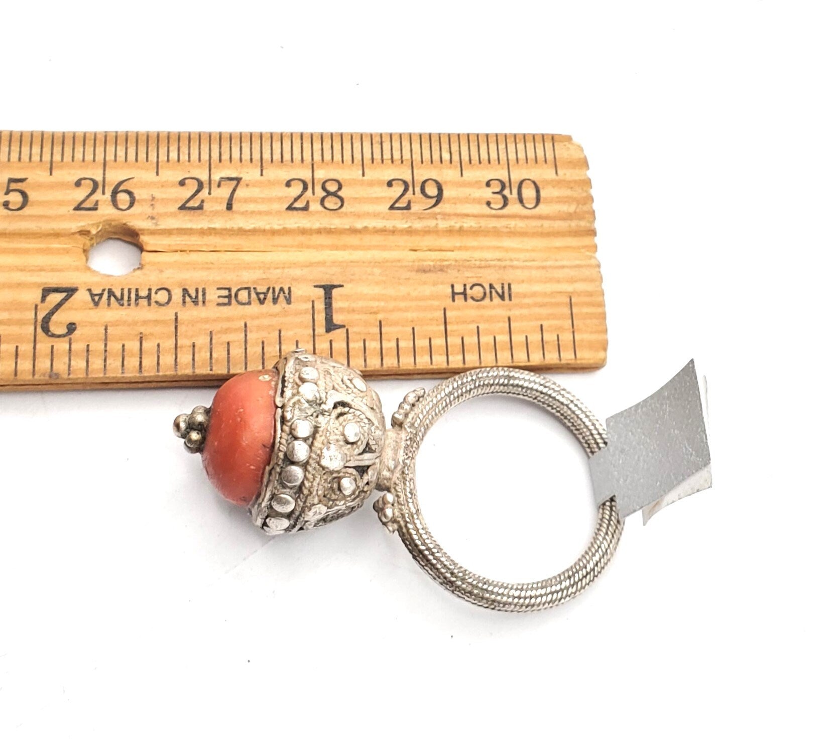 Antique Bawsani Yemen Silver Red Coral Ring size 8 Yemen tribal, triba