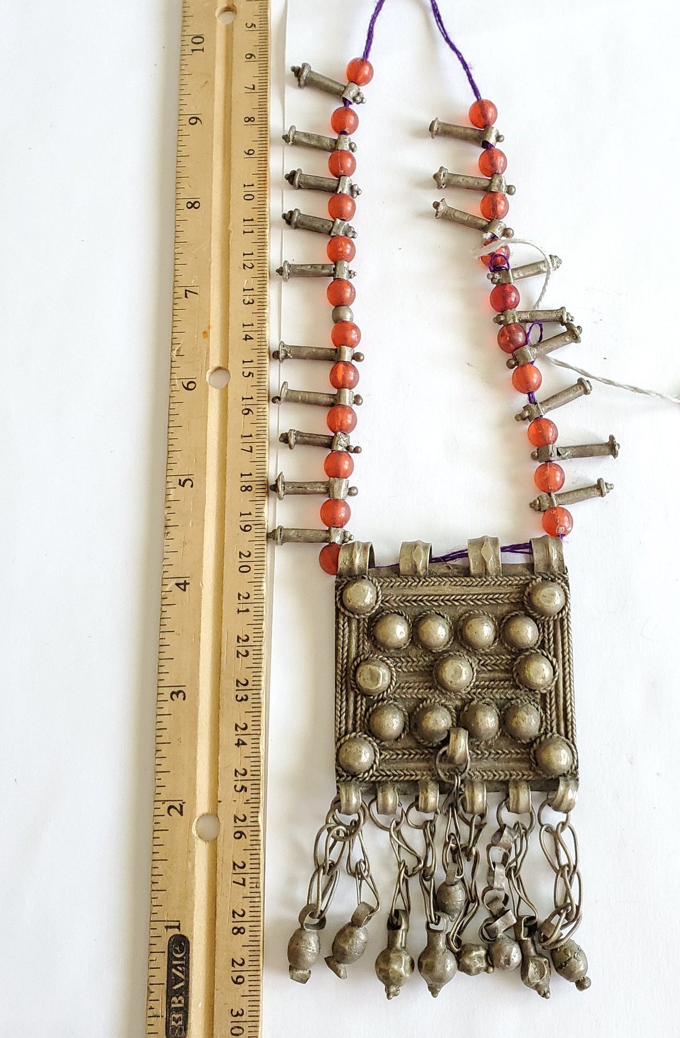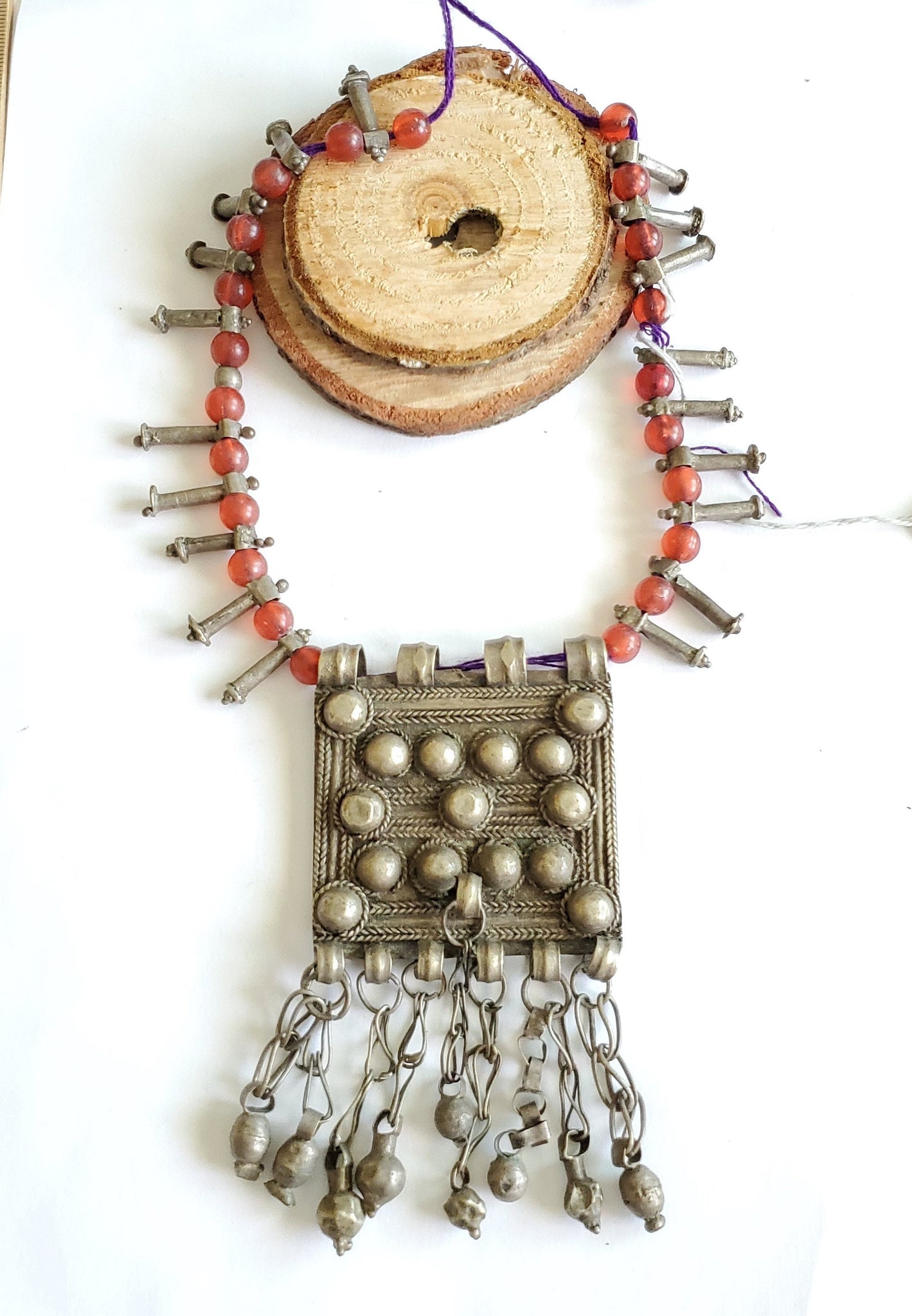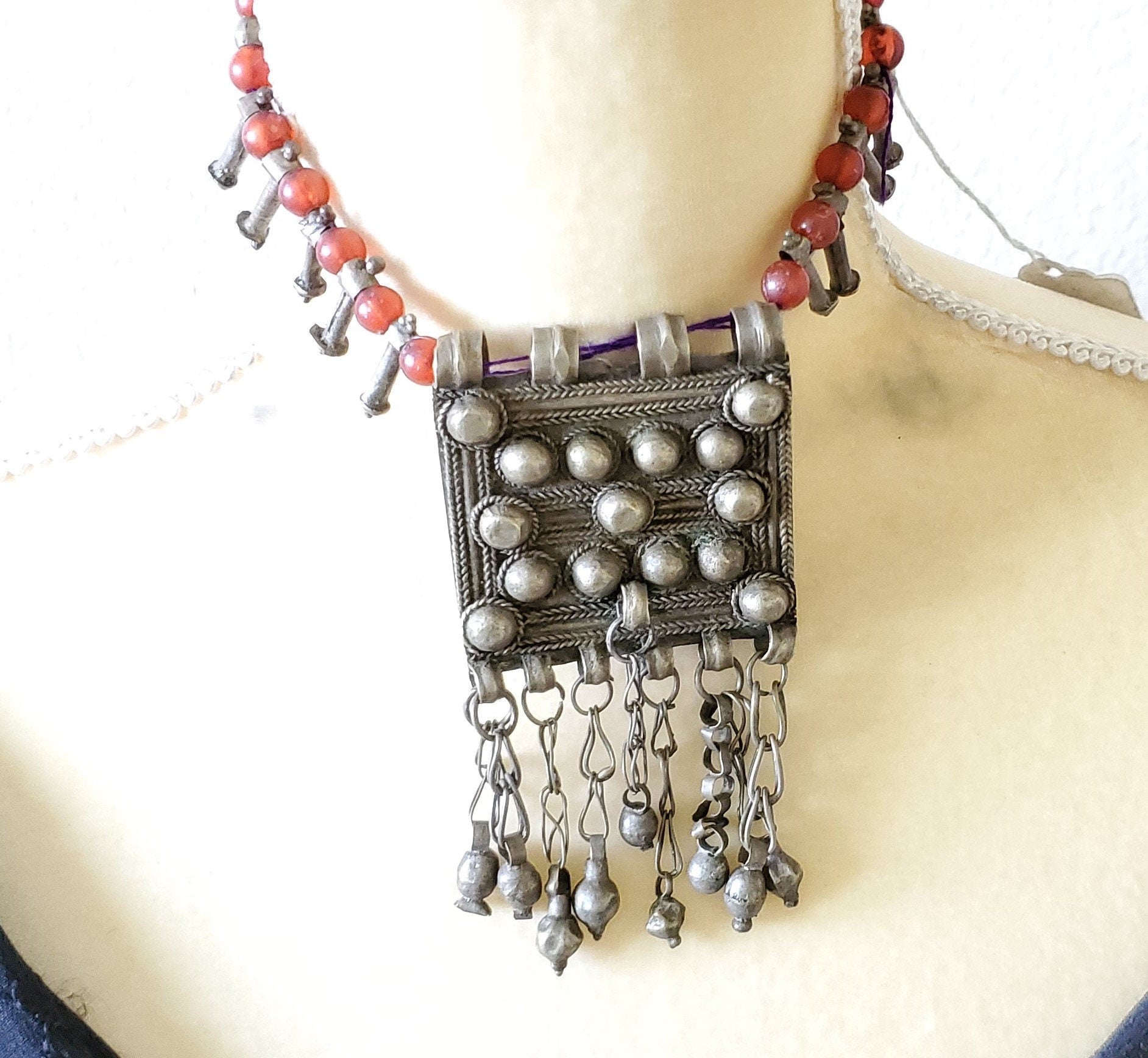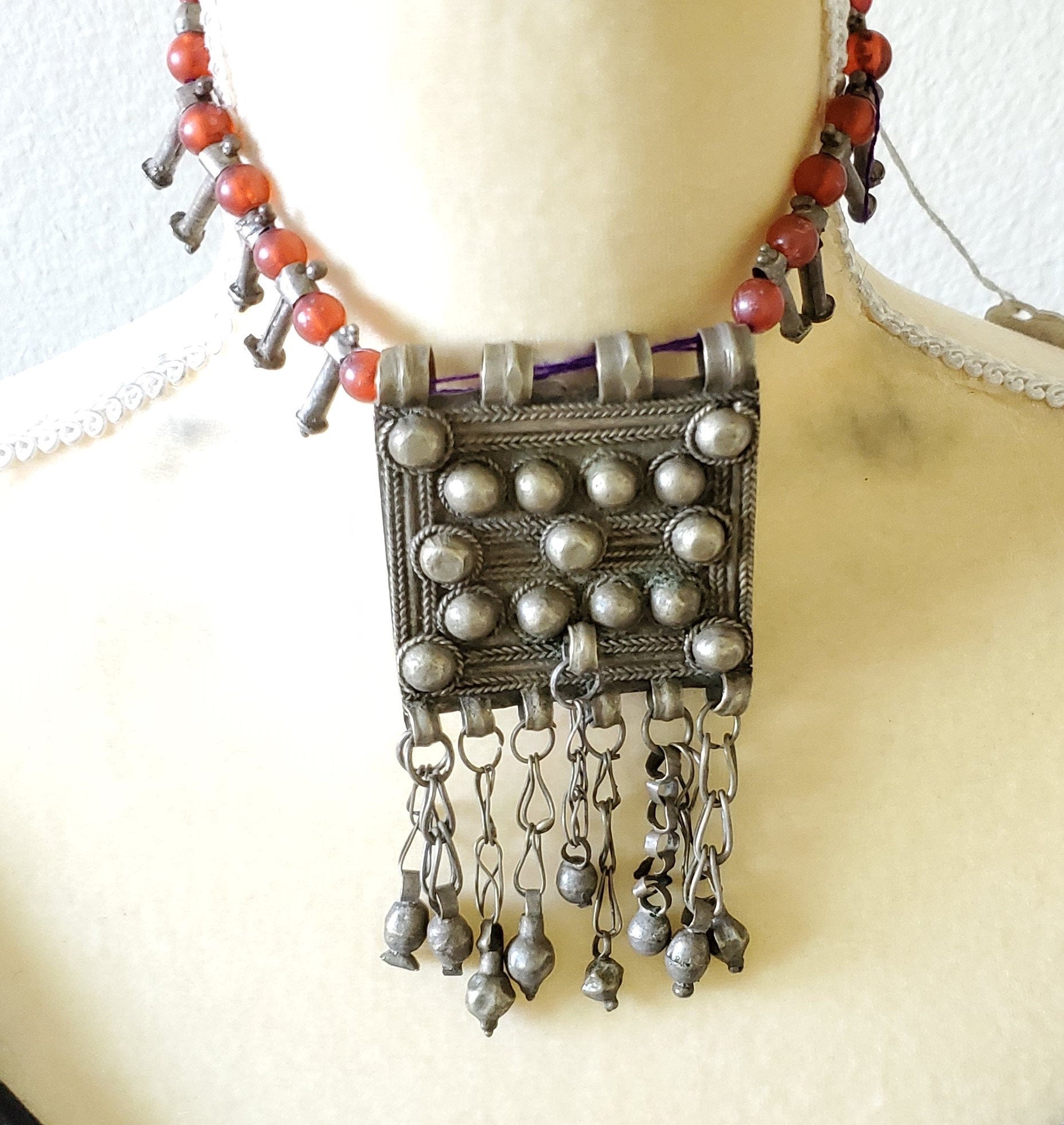 Antique Ethiopian silver amulet Phallic Pendants Glass Beads necklace,Hand Crafted, Ethiopian Telsum,african Silver, ethiopian jewelry