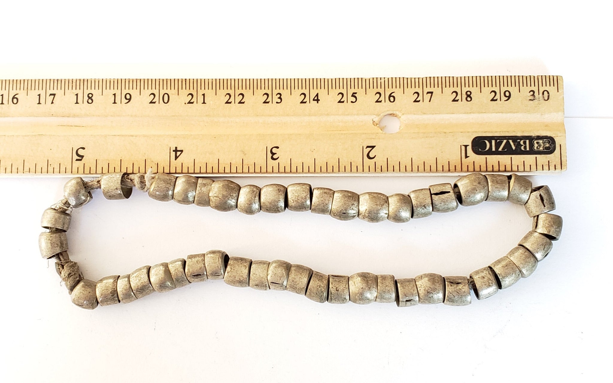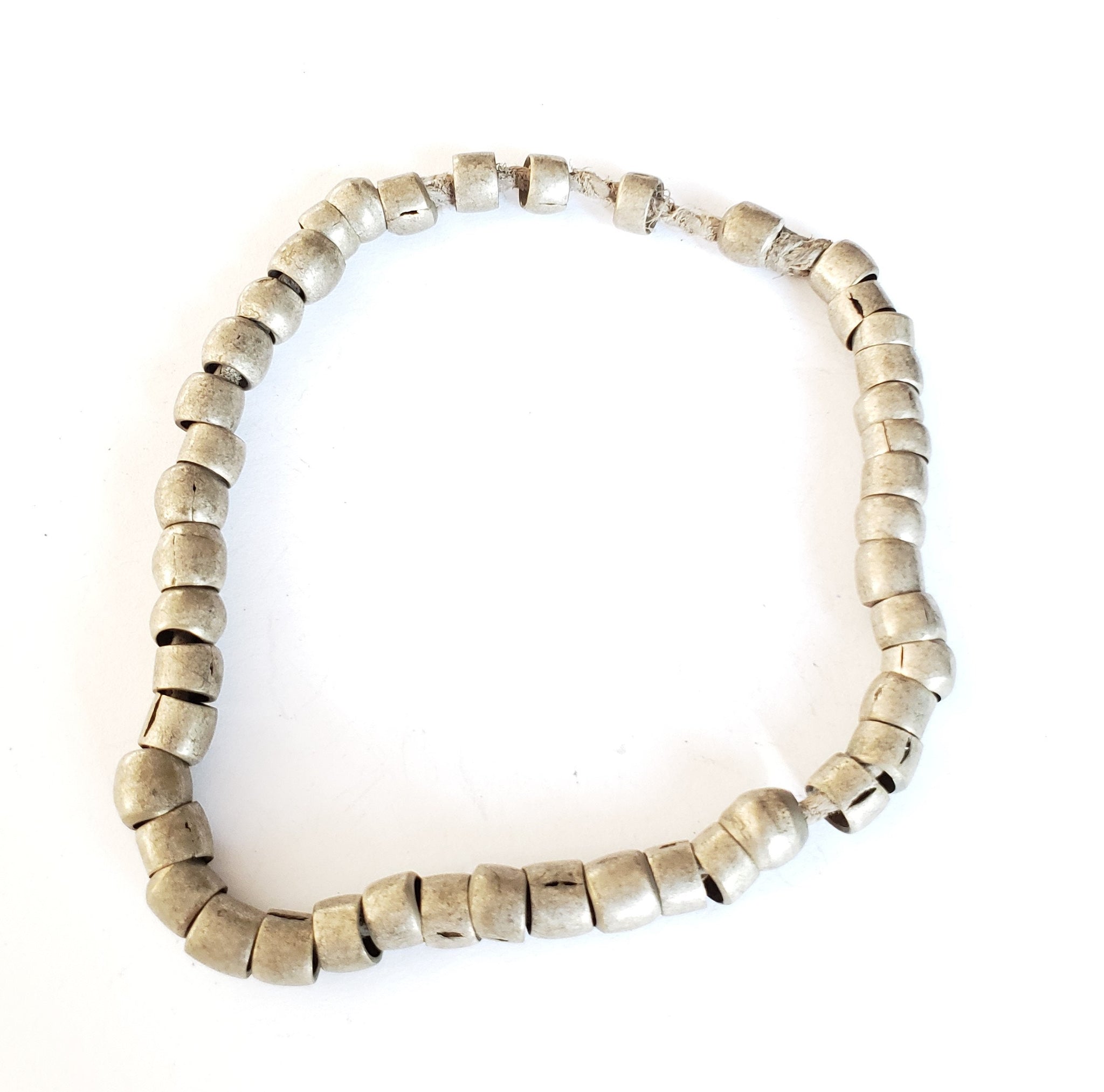 very old strand of silver Heishi Anklet beads beautiful! May have once been an anklet! from-Ethiopia These beautiful very old silver Heishi Anklet beads strand form Ethiopian on raffia 12 inches strand Silver bead measures of small 8mm diameter x 6mm thick heishi from Ethiopia; high silver content. Over 100 years old; and The hole is 3mm wide.... A beautiful strand to add interest and texture to any jewellery The beads are in very good condition.very collectible and would be perfect for adding to your Ethiopian collection. other shop https://www.etsy.com/shop/Africanbazar2US?ref=seller-platform-mcnav.......africanbazaarus.com